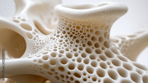 Abstract porous structure, close-up, white, studio, 3D render, design element