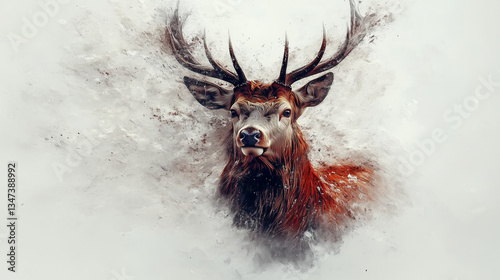 Abstract portrait of a deer with a dispersing effect. Artistic and evocative image capturing the majestic essence of wildlife.