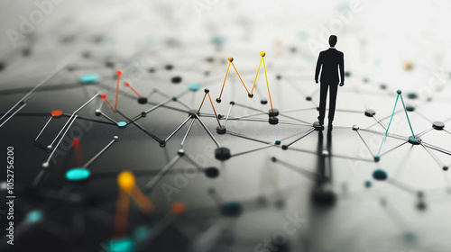 abstract professional business team people innovation connection of line from nail node to node on map background , networking concept