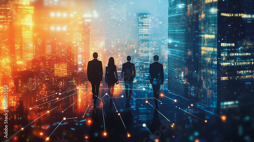 abstract professional business team people innovation connection of line from nail node to node on Smart Innovation city with connection cyber security network reciprocity , networking concept
