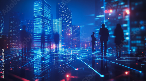 abstract professional business team people innovation connection of line from nail node to node on Smart Innovation city with connection cyber security network reciprocity , networking concept