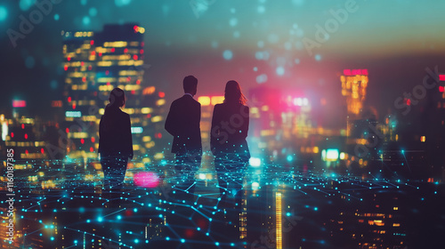 abstract professional business team people innovation connection of line from nail node to node on Smart Innovation city with connection cyber security network reciprocity , networking concept