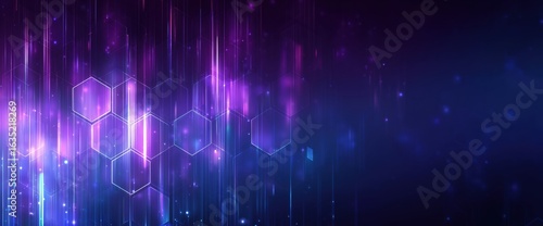 Abstract purple and blue background with a hexagonal pattern for a technology concept vector presentation design template Generative AI