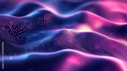 Abstract Purple and Blue Wavy Digital Background with Lines of Light