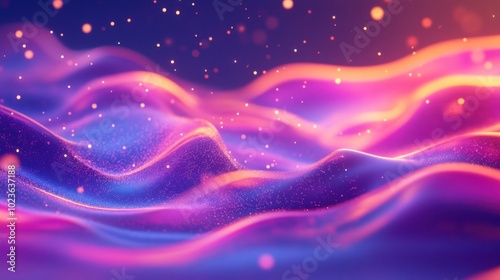 Abstract Purple and Pink Wavy Background with Glittering Lights