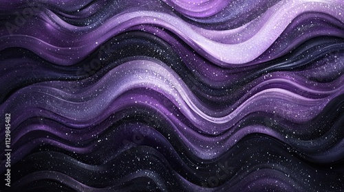 Abstract Purple and Silver Wave Pattern with Glittering Texture