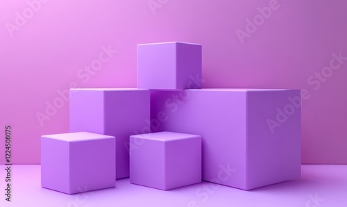 Abstract purple cubes, geometric design, 3d render, Generative AI
