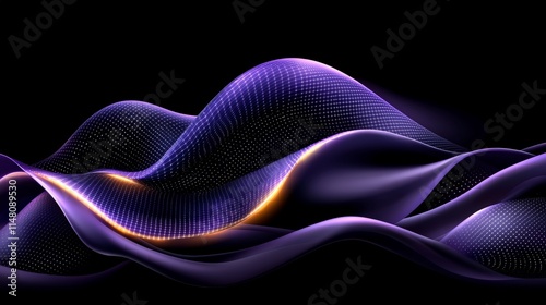 Abstract Purple Glowing Grid Waves Futuristic Dark Background Technology Design