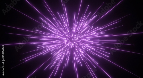Abstract Purple Light Rays Burst Glowing Neon Lines Starburst Effect Background