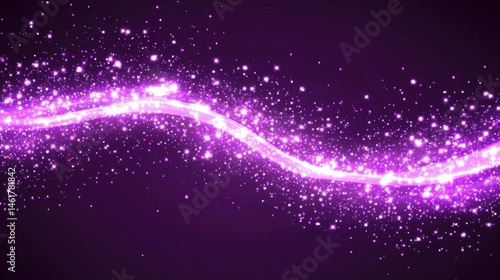 Abstract Purple Light Wave with Sparkling Particles on Dark Background Digital Art Style