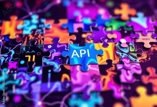 Abstract puzzle pieces forming a network, representing interconnected APIs, design, background