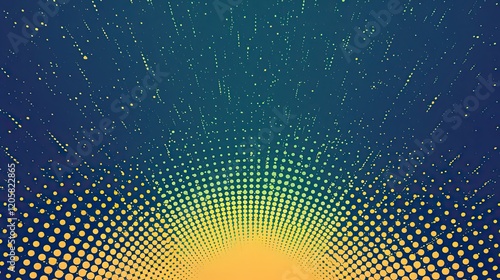 Abstract radial halftone pattern with yellow and green dots on dark background.