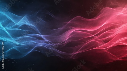 Abstract red and blue light waves on dark background