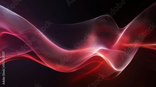 Abstract red and pink wave on black background.