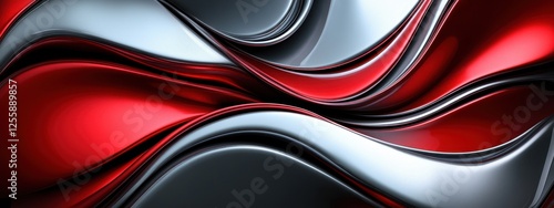 Abstract Red and Silver Metallic Waves Swirling Design Background Image