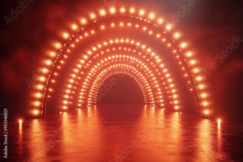 Abstract red archway with glowing lights