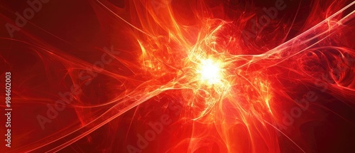 Abstract red background featuring a line art illustration of a fractal explosion star with glossy effects and dynamic lines