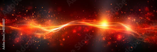 Abstract red banner. Red glowing background with defocused gold particles and wavy stripes. Generative Ai.