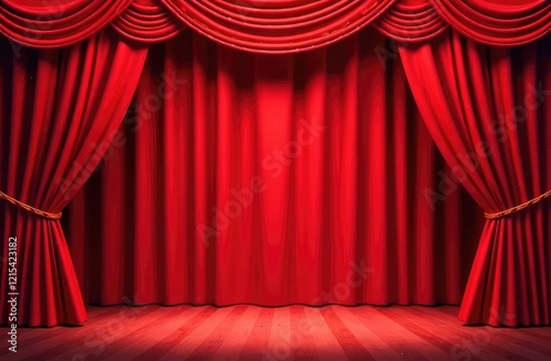 Abstract red curtains . Circus stage with red lines and spotlights.
