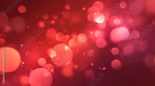 Abstract red festive bokeh background with glowing light orbs and copy space