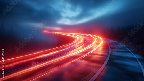 Abstract Red Light Trail on Blue Background Representing Speed, Technology, and Futuristic Design Elements