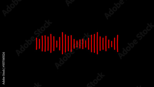 Abstract red on black sound waves background. Audio waves equalizer, voice, and speech recording. Sound line graph. 911 call visualization, voice waveform. Police radio voice, emergency call recording