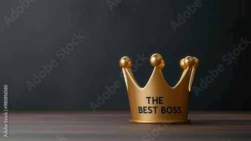 Abstract rendering of a crown made of light hovering over an office desk, symbolizing leadership Boss s Day, authority