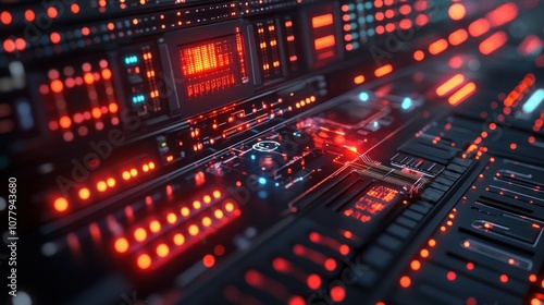 Abstract representation of a digital circuit with glowing elements.