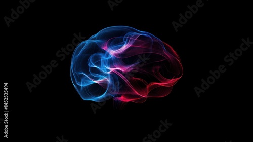Abstract representation of a human brain, glowing with vibrant red and blue