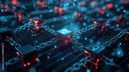 Abstract representation of blockchain technology with glowing elements.