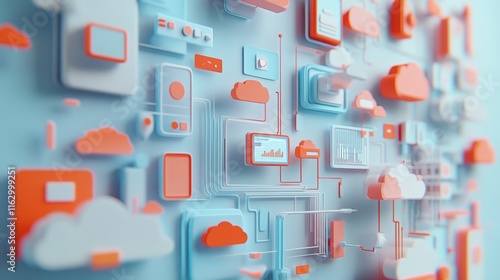 Abstract representation of cloud computing and digital connections in a modern design.