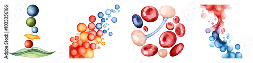 Abstract representation of colorful spheres and organic shapes, suggesting molecular structures or scientific concepts related to chemistry and biology.