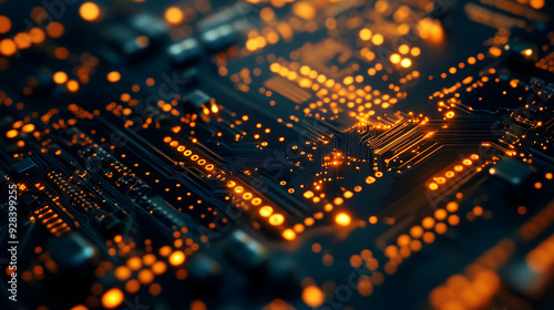 Abstract representation of data transferring on a circuit board, creating a complex network of connections