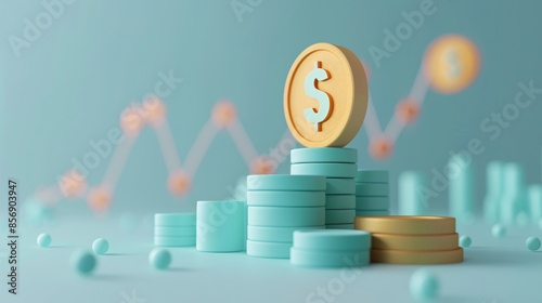 Abstract representation of financial growth with stacked coins and graph in the background symbolizing economic investment and success. 3D Illustration.