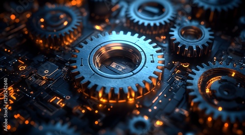 Abstract Representation of Global Economy with Interconnected Gears Symbolizing Cooperation and Growth – Generative AI