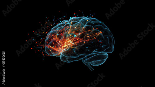 abstract representation of human brain, showcasing vibrant neural connections and activity. image conveys sense of complexity and intelligence, with colorful lines representing thoughts and ideas