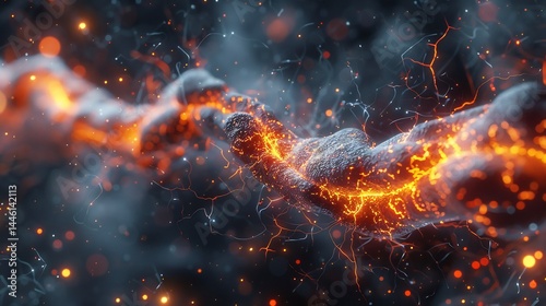 Abstract representation of multiple sclerosis damaged myelin sheath shown as interruptions in clean Glowing
