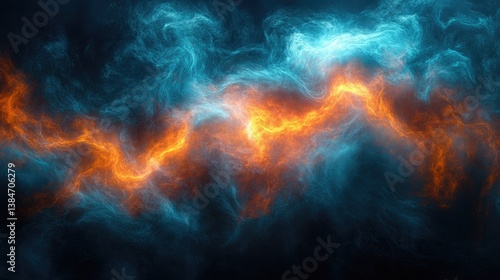 Abstract representation of swirling blue and orange smoke with dynamic lighting effects