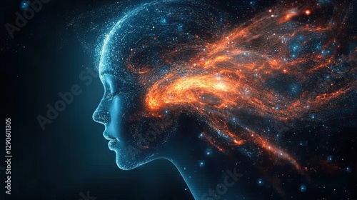 Abstract representation of the human mind with swirling brain activity and energy patterns
