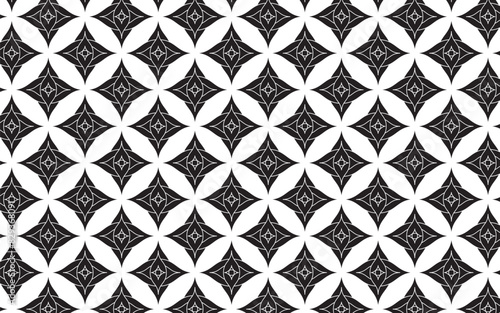 Abstract retro circles leaves geometric decorative vector black color seamless pattern