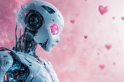 abstract robot on pink heart background with copy space, valentine day concept