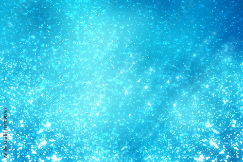 Abstract round silver bokeh or glitter lights on blue background. Circles defocused particles