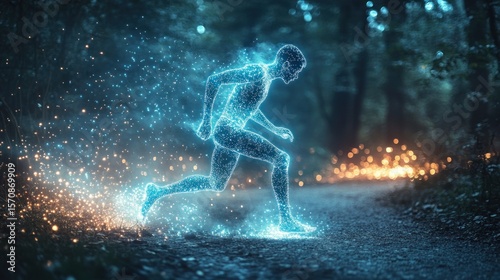 Abstract runner, glowing, forest path