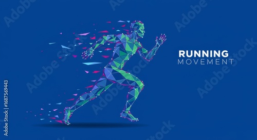 Abstract Running Man Vector , Geometric Lines and Triangles with Point Network on Blue Background for Fitness and Sports Design