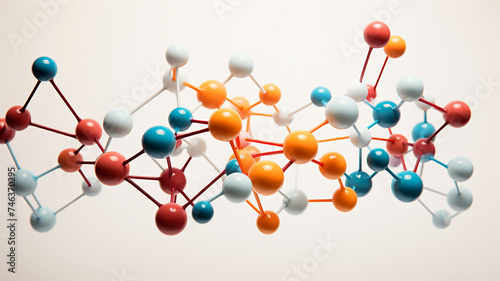 abstract schematic representation of the molecular structure, the relationship of atoms, multicolored round objects in the relationship. fictional object