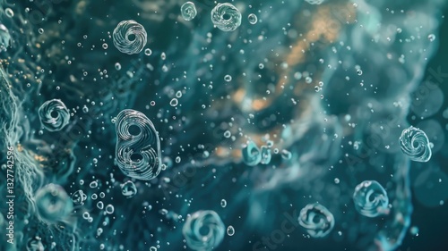 Abstract scientific visualization of microbial life forms in fluid dynamics for educational and research purposes