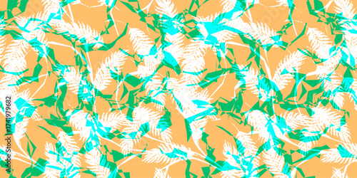 Abstract seamless geometric background with colorful plants. Seamless vector for textile, paper, or surface design.
