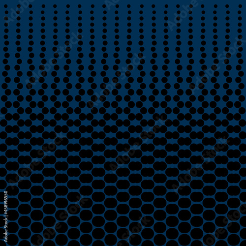 Abstract seamless geometric circle pattern. Mosaic background of black circles. Evenly spaced shapes of different sizes. Vector illustration on dark blue background