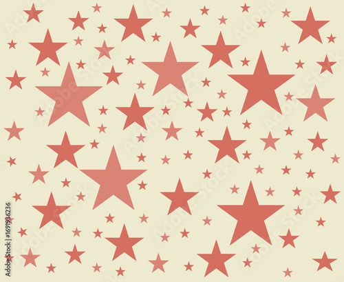 Abstract seamless groovy festive pattern with stars in orange on a cream background colour