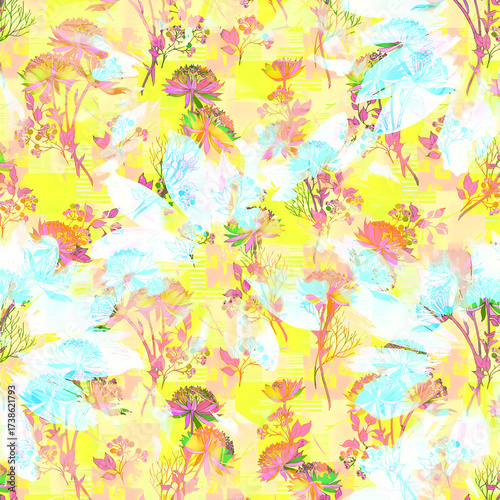 Abstract Seamless Pattern Design, Repeatable Textile Fabric Print, Multicolor Allover Floral Design